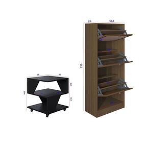 Kit Sapateira Spin Tropical 3 Portas E 2 Mesas De Cabeceira Preto/carvalho