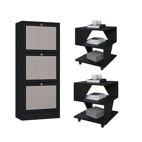 Kit Sapateira Spin Tropical 3 Portas E 2 Mesas De Cabeceira Preto Kit Moveis Spin/Tropical 2 Mesas de Cabeceira + 1 Sapateira 3 Portas Poquema Leve funcionalidade, organizacao e estilo para sua casa com o Kit Tropical da Poquema Moveis, composto por 2 Mesas de Cabeceira e 1 Sapateira 3 Portas. Com design moderno e estrutura em BP (Laminado de Baixa Pressao), os moveis sao resistentes a riscos, umidade e manchas, garantindo durabilidade e facil manutencao.
