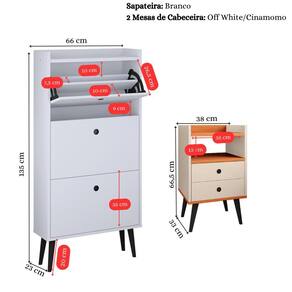 Kit Sapateira Vertical 3 Gavetas Basculantes Dark Branco e 2 Mesinhas Canto Quarto Nicho Decorativo Dream Off White/Cinamomo RPM