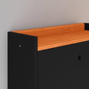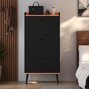 A Sapateira Dark conta com três gavetas basculantes, tornando o acesso aos calçados fácil e prático, já que a gaveta se inclina para baixo quando aberta, permitindo que você visualize e retire os sapatos com facilidade.