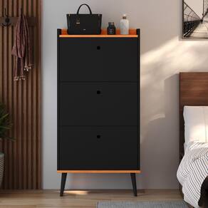 A Sapateira Dark conta com três gavetas basculantes, tornando o acesso aos calçados fácil e prático, já que a gaveta se inclina para baixo quando aberta, permitindo que você visualize e retire os sapatos com facilidade.