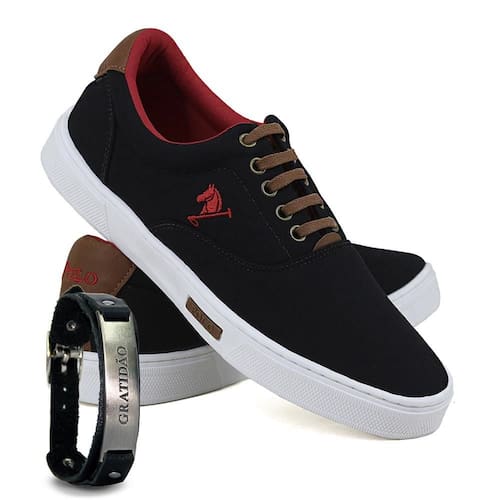 Kit Sapatênis Lona Amarração com Pulseira Masculino Casual - 44 - Preto