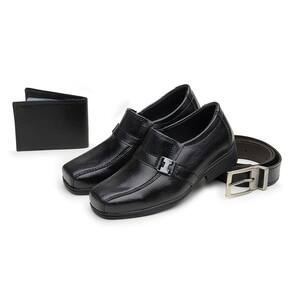 Kit Sapato Social Infantil Menino Palmilha Macia Bico Quadrado Calce Facil Festa Conforto - 32 - Preto