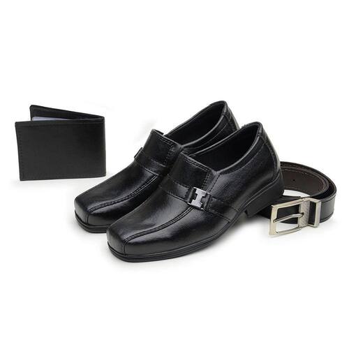 Kit Sapato Social Infantil Menino Palmilha Macia Bico Quadrado Calce Facil Festa Conforto - 36 - Preto