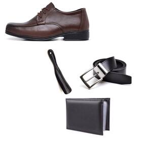 Kit Sapato Social Infantil Menino Solado PVC Cadarço Igreja Com Carteira Cinto e Calçadeira - 25 - Marrom
