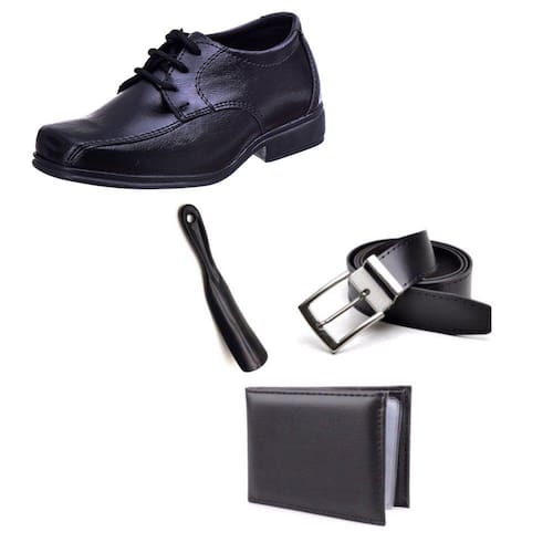 O Sapato Social Infantil vai deixar qualquer look mais divertido, o pé da criança vai conseguir manter uma pisada firme, deixando a brincadeira mais segura!CARACTERÍSTICAS DO PRODUTOMaterial: SintéticoEstilo da Peça: LisoFechamento: Ajuste CadarçoMaterial Interno: Tecido jackar dublado em eva 1,2 mmPalmilha: EVATipo de Bico: QuadradoAltura do Salto: 2,5 cmSolado: PVC MacioComplemento da Descrição: Kit composto por 1 par de Sapato Social, 1 Cinto, 1 Carteira e 1 CalçadeiraMEDIDAS APROXIMADAS20: 15 cm21: 15,5 cm22: 15,5 cm23: 16,5 cm24: 16,5 cm25: 17,0 cm26: 18,0 cm27: 19,0 cm28: 19,5 cm29: 20,0 cm30: 21,0 cm31: 21,5 cm32: 22,0 cm33: 22,5 cm34: 23,0 cm35: 24,0 cm36: 25,0 cmCIRCUNFERÊNCIA DO CANO20: 17,5 cm21: 17,5 cm22: 17,5 cm23: 17,5 cm24: 18,5 cm25: 19,0 cm26: 19,5 cm27: 19,5 cm28: 20,5 cm29: 21,0 cm30: 21,5 cm31: 21,5 cm32: 22,0 cm33: 22,5 cm34: 23,0 cm35: 23,5 cm36: 24,0 cmOBSERVAÇÃOOs produtos podem apresentar pequenas alterações na cor devido as configurações de cada monitor.DICAS DE CONSERVAÇÃONão mergulhe o seu calçado em água, utilize apenas um pano limpo, umedecido em água sem nenhum tipo de produto químico. Nunca utilize máquinas de lavar ou secar, deixe-os secar à sombra e longe de qualquer outra fonte de calor, pois poderá danificá-los. Não guarde seu calçado sujo, os resíduos que nele estarão armazenados, podem gerar corrosões e riscos.
