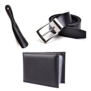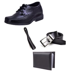 Kit Sapato Social Infantil Menino Solado PVC Cadarço Igreja Com Carteira Cinto e Calçadeira - 30 - Preto