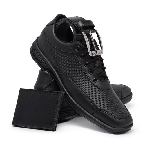 Este kit é a escolha perfeita para quem busca um visual moderno e sofisticado. O sapato social apresenta recortes com diferentes texturas e costuras aparentes, adicionando um toque de sofisticação ao seu look. Seu bico quadrado, palmilha macia e confortável, juntamente com o solado de borracha, garantem um caminhar firme e seguro, seja para o trabalho ou eventos especiais. A carteira, produzida em material sintético de alta qualidade, é compacta e funcional, com capacidade para até 6 cartões e 4 divisórias de plástico. Já o cinto, também feito de material sintético, possui 1,25m de comprimento e largura de 3,5cm, oferecendo durabilidade e um ajuste perfeito. Detalhes da carteira: Altura: 8cm Comprimento: 11cm Largura: 2cm Porta cartões: 6 Divisórias de plástico: 4 Detalhes do cinto: Comprimento: 1.25m Largura: 3.5cm Tabela de medidas: 37 - 24.7 cm 38 - 25.3 cm 39 - 25.9 cm 40 - 26.5 cm 41 - 27.1 cm 42 - 27.7 cm 43 - 28.3 cm 44 - 28.9 cm Com este kit, você combina praticidade, conforto e elegância em um único conjunto, perfeito para complementar o seu estilo! Observação: Em decorrência da configuração de cada monitor, as cores das fotos podem ter uma leve variação. Marca: M&D STORE