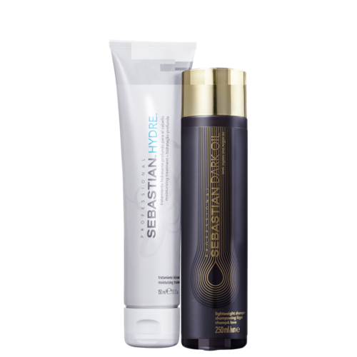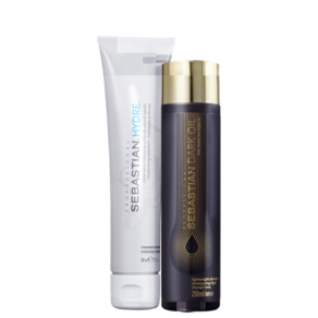 Kit de tratamento com shampoo e máscara para cabelos equilibrados a secos. Kit Sebastian Professional Dark Oil & Hydre limpa sem agredir os fios enquanto restaura a umidade pedida e ajuda a reduzir o frizz.