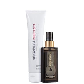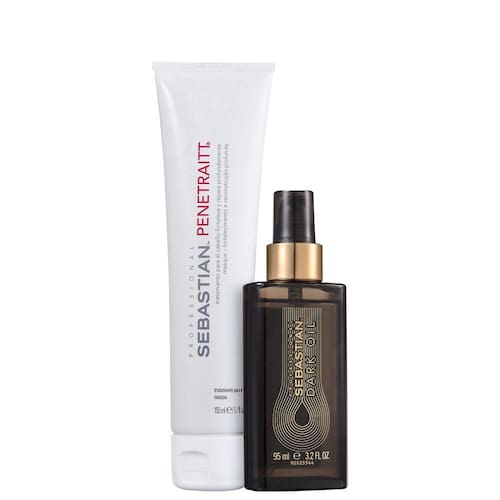 Kit Sebastian Professional Dark Penetraitt Duo fortalece a fibra capilar para mais resistência e elasticidade. Também protege dos raios UV, controla o frizz, promove brilho e aumenta a suavidade por até 48 horas.
