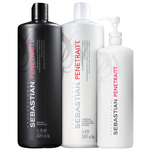 O Kit Sebastian Professional Penetraitt Trio Salon tem alto poder de absorção, podendo penetrar até as camadas mais profundas dos fios, o que aumenta a resistência e a elasticidade do cabelo. Possui grande capacidade de reconstrução das fibras capilares, devolvendo a vitalidade e saúde, além de promover um toque seco e confortável.