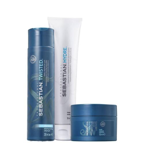 Kit Sebastian Professional Twisted Elastic + Hydre conta um shampoo e uma máscara com fórmulas desenvolvidas para as necessidades específicas dos cabelos cacheados e ondulados, e uma máscara de tratamento semanal para hidratar profundamente os fios. Deste modo, oferece cabelos com uma poderosa hidratação, além de nutrir e fortalecer os fios, enquanto controla o frizz.