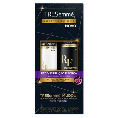 O Kit TRESemmé Reconstrução e Força reduz 99% da quebra dos fios desde o primeiro uso, deixando seus cabelos mais fortes e resistentes. Ele foi profissionalmente desenvolvido com Fórmula Micelar que, por meio de moléculas inteligentes, remove as impurezas de maneira delicada e eficaz, sem agredir os fios. Além disso, sua fórmula é enriquecida com Proteína, Colágeno e Aminoácidos e reduz a quebra dos fios, reconstruindo a força dos cabelos que foram danificados por processos químicos. Pode ser usado todos os dias e é indicado para cabelos danificados.