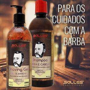 br / Cabelos e Barba Limpos, Hidratados e Fortalecidos:br / br / br / Barbear Suave e Sem Irritações:br / br / br / br / br / O Kit Contém:br / br / Shampoo Cabelo e Barba 500mlbr / br / Shaving Gel 500grbr / br / br / br / Indicação:br / br / br / br / br / Onde Usar:br / br / br / br / br / br / Modo de Uso:br / br / br / br / br / br / br / Principais Ativos:br / br / Shampoo Cabelo e Barba: Fórmula suave e hidratante, enriquecida com Extrato de Alecrim e Pantenol, que limpa, nutre e revitaliza os fios e a barba, proporcionando maciez, brilho e força.br / br / br / br / br / Principais Dúvidas:br / br / br / Shampoo Cabelo e Barba é indicado para todos os tipos de cabelo e barbabr / br / O Shaving Gel pode ser em peles sensíveisbr / Sim, o gel possui uma fórmula suave e hidratante, com Aloe Vera, ideal para peles sensíveisbr / br / br / br / Dicas:br / br / br / br / br / br / br / br / br / Adquira o Kit Shampoo Cabelo e Barba + Shaving Gel Salles e conquiste um ritual de cuidados completo, com produtos de alta qualidade e resultados profissionaisbr / br / Marca: Não Informado