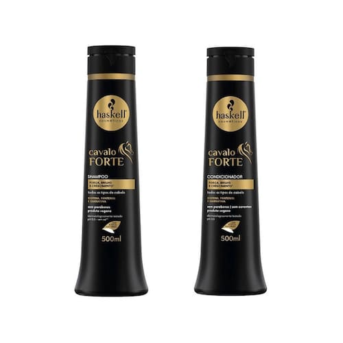 Shampoo haskell 500ml cavalo forte Descrição: O shampoo haskell cavalo forte 500ml foi formulado para promover o fortalecimento dos fios, contribuindo para um crescimento saudável e resistente. Enriquecido com ingredientes nutritivos, este shampoo limpa suavemente enquanto revitaliza os cabelos, reduzindo a quebra e melhorando a elasticidade. Ideal para cabelos danificados e fragilizados, proporciona um aspecto saudável e brilhante. Modo de uso: Aplique o shampoo haskell cavalo forte nos cabelos molhados, massageando suavemente até formar espuma. Deixe agir por alguns minutos e enxágue bem. Para resultados ainda melhores, siga com o condicionador haskell cavalo forte e use regularmente. Marca: Não Informado