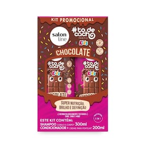 Contém: 01 - Shampoo ToDeCachos Kids Chocolate 300ml, Salon Line 01 - Condicionador ToDeCachos Kids Chocolate, 200ml, Salon Line O Kit Shampoo + Condicionador de Chocolate da linha ToDeCachos Kids da Salon Line foi criado especialmente para proporcionar super nutrição, brilho e definição aos cabelos das crianças. Com uma fórmula segura, suave e um cheirinho delicioso de chocolate, ele deixa os fios mais macios, hidratados e cheios de vida, garantindo cachinhos bem cuidados e desembaraçados com facilidade. Um de seus componentes é o cacau, que é rico em nutrientes e hidrata e fortalece os fios. Ambos os produtos nesse kit são 2 em 1, o shampoo pode ser no cabelo e no corpo. Ele limpa suavemente, hidratando e protegendo os fios e a pele. Já o condicionador pode ser também como creme de pentear, nutrindo, desembaraçando e definindo os cachos. Características Principais: - Shampoo 300ml; - Condicionador 200ml; - Produtos 2 em 1; - Proporciona nutrição, brilho e definição; - Fios mais macios, hidratados e cheios de vida; - Fácil desembaraço; - Fórmula enriquecida com cacau. Marca: Não Informado Ean: 7908458328888