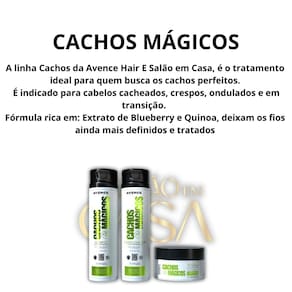 Kit Shampoo + Condicionador + Máscara Cachos Mágicos Avence Hair 300g - Salão em Casa