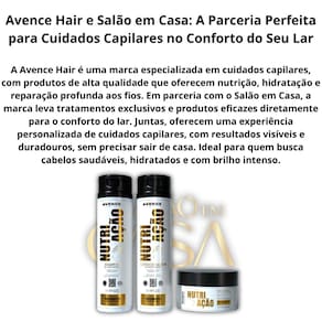 O Kit Nutrição Salão Avence Hair reúne três poderosos aliados para uma experiência de tratamento completo, proporcionando hidratação profunda, nutrição intensa e reparação. Com o Shampoo,