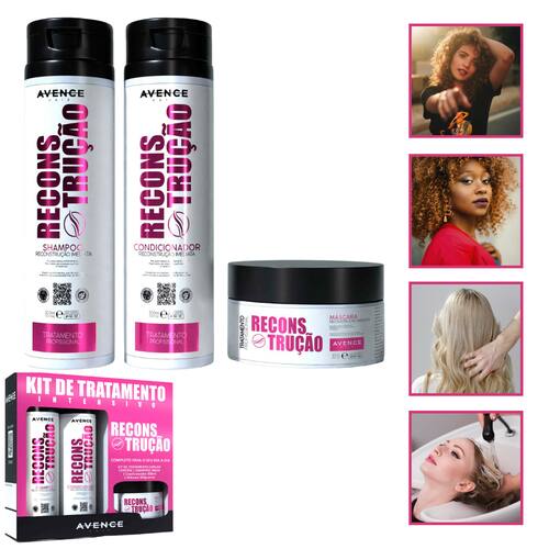 O Kit Reconstrução Profunda Avence Hair foi desenvolvido para restaurar cabelos danificados por processos químicos ou agressões externas, como uso excessivo de ferramentas térmicas. Com shampoo, condicionador e máscara, oferece um tratamento completo que proporciona força, hidratação e brilho intenso, imitando os resultados de um salão de beleza.
