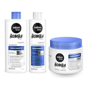Ideal para quem deseja cabelos mais longos, fortes e saudáveis, o kit da linha SOS Bomba Crescimento Capilar da Salon Line, composto por Shampoo + Condicionador e Máscara de Tratamento Capilar, promove um tratamento completo para crescimento acelerado, fortalecimento e reparação dos fios, garantindo cabelos nutridos e resistentes desde a raiz. Com um shampoo que estimula o crescimento saudável dos fios enquanto limpa suavemente sem ressecar, um condicionador que hidrata profundamente, desembaraçando e fortalecendo os fios e uma máscara de tratamento intensivo que repara danos além de reduzir a quebra e fortalecer a fibra capilar, este é o kit perfeito para quem busca acelerar o crescimento dos fios e deixá-los até 30x mais fortes