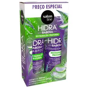 O kit contém: 1 Shampoo Hidra Babosa e Queratina 300ml; 1 Condicionador Hidra Babosa e Queratina 300ml.