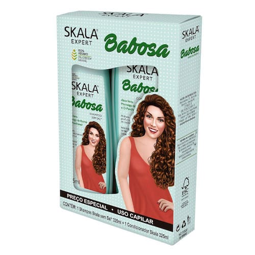 O Kit Shampoo + Condicionador Skala Babosa 325ml é indicado para todos os tipos de cabelo, especialmente para cabelos secos, danificados e quimicamente tratados. Foi especialmente desenvolvido com extrato de babosa, também conhecido como aloe vera. A babosa é conhecida por suas propriedades hidratantes e nutritivas que ajudam a fortalecer os fios, combater a queda de cabelo e reduzir a caspa. O shampoo contém uma fórmula suave e livre de sulfatos, que não agride o couro cabeludo nem resseca os fios. Limpa delicadamente o cabelo, removendo a sujeira e o excesso de oleosidade. Além disso, ajuda a fortalecer os fios, deixando-os mais saudáveis e resistentes. O condicionador é enriquecido com a mesma fórmula nutritiva da babosa, que ajuda a hidratar e nutrir os fios. Proporciona condicionamento profundo, maciez, fios sedosos e fáceis de pentear. Ajuda ainda a reduzir o frizz e proteger o cabelo contra danos causados pelo sol e pela poluição. É livre de parabenos, petrolatos e silicone.