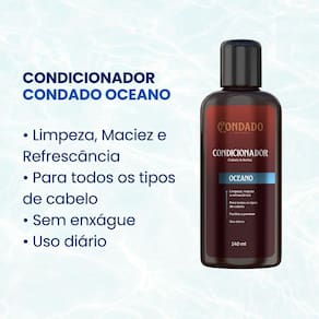 Kit Condado Oceano - Shampoo + Condicionador + Gel de Barbear 140ml ProfissionalO Kit Condado Oceano é ideal para homens que valorizam praticidade, cuidado e frescor no dia a dia. Composto por Shampoo, Condicionador e Gel de Barbear, garante cabelos e barba sempre bem cuidados, além de um barbear confortável e sem irritações.