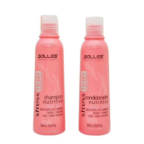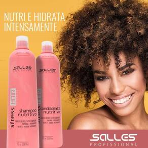 Shampoo Hair Intensive Salles , tratamento Nutritivo pós coloração e permanente Shampoo Hair Nutritivo Salles dá energia e brilho, revigorando e tonificando os fios em toda a sua extensão. É o Shampoo especialmente balanceado para a neutralização do pH alcalino das tinturas e dos produtos de tratamentos químicos após a coloração, permanentes, relaxamentos e etc. Contem Proteínas Hidrolisadas Naturais Queratina Tutano Aloe Vera Nutrientes do Germe de Trigo que atuam na restauração e proteção das cutículas danificadas, ásperas e sem vida. Passo a Passo Usar logo após a coloração e tratamento químico, para neutralizar o pH alcalino e retirar os resíduos químicos remanescente. Para devolver o brilho e maciez, massageie os cabelos suavemente em toda sua extensão. Enxaguar normalmente. Para o sucesso e cuidados com os cabelos complete a lavagem com o Condicionador Hair Salles . Indicação Cabelos crespos, secos, danificados,tintura e permanentes. Efeito Cabelos brilhantes e com vitalidade. Condicionador Hair Intensive Salles , tratamento Nutritivo pós coloração e permanente Condicionador Hair Nutritivo Salles termo-protetor neutraliza as cargas eletrostáticas negativas dos cabelos. Apresenta uma fórmula única e rica que desembaraça os cabelos, deixando os cabelos fortes e fáceis de pentear com maciez e brilho. Sua fórmula balanceada apresenta um resultado extraordinário e único na Reconstrução, Nutrição e Hidratação dos cabelos. Contém Silicone Termo Protetor que protege as cutículas dos cabelos durante aplicação de calor. Contem Proteínas Hidrolisadas Naturais Queratina Tutano Aloe Vera Nutrientes do Germe de Trigo que atuam na restauração e proteção das cutículas danificadas, ásperas e sem vida. Passo a Passo Usar logo após a coloração e tratamento químico, para neutralizar o pH alcalino e retirar os resíduos químicos remanescente. Para devolver o brilho e maciez, massageie os cabelos suavemente em toda sua extensão. Enxaguar normalmente. Para o sucesso e cuidados com os cabelos Use após Lavagem com o Shampoo Hair Salles . Indicação Cabelos crespos, secos, danificados,tintura e permanentes. Efeito: Cabelos brilhantes e com vitalidade. Marca: Não Informado