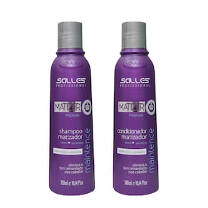 O Kit Matizer Maintence da Salles Profissional inclui Shampoo e Condicionador de 300 ml cada, ideais para manter cabelos loiros, descoloridos, com mechas ou grisalhos livres de amarelamento. Com ativos matizadores e nutritivos, essa dupla neutraliza tons indesejados, hidrata profundamente os fios e entrega loiros luminosos, resistentes e saudáveis.