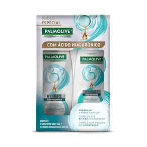 Kit Shampoo e Condicionador Palmolive Hydrate O novo shampoo e condicionador Palmolive SOS Cuidados Especiais Hydrate tem ácido hialurônico na fórmula, que preenche a fibra capilar para cabelos até 5x