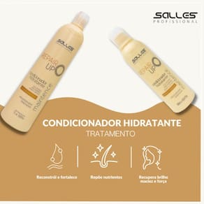 O Kit Repair Up Maintence reúne shampoo e condicionador de 300 ml cada, criando um duo reconstrutor ideal para restaurar cabelos danificados. A fórmula combina agentes reparadores que agem desde o interior da fibra capilar, proporcionando força, maciez e brilho duradouro.