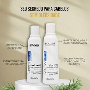 Shampoo Anti-Oleosidade Sensitive Salles , Tratamento controle da Oleosidade e Anti Queda Limpa profundamente, removendo a oleosidade excessiva e os resíduos químicos de outros produtos, e da poluição, couro cabeludo mais limpo. É o produto ideal na higiene diária dos cabelos para pessoas que tem a tendência de queda de cabelos. Para o sucesso e cuidados com os cabelos, complete a lavagem com o Condicionador Anti-Oleosidade Sensitive Control Salles . Contem: Extrato natural de Jaborandi Policarpus Jaborandi H que atua a nível das raízes e bulbos capilares, revigorando e facilitando o crescimento dos cabelos. Alecrim ajudam a manter a saúde do couro cabeludo e balancear o excesso de oleosidade, prevenindo o aparecimento da caspa. Passo a Passo: Aplique o Shampoo Anti-Oleosidade Sensitive Control Salles , massageando os cabelos durante alguns minutos para assegurar a plena ação dos ingredientes ativos. Enxaguar. Para um Melhor resultado Após utilizar o Shampoo Anti-Oleosidade Sensitive Control Salles , aplique o Condicionador Sensitive no cabelo ainda molhado. Massageie o couro cabeludo. Deixe agir de 1 a 2 minutos e enxágue. Para obter melhores resultados, use diariamente. Efeito: Cabelos brilhantes e com vitalidade Condicionador Anti-Oleosidade Sensitive Salles , Tratamento controle da Oleosidade e Anti Queda Nutre profundamente, controlando a oleosidade. O couro cabeludo mais limpo facilita a absorção do com aminoácidos, o Condicionador Anti-Oleosidade Sensitive Control repõe a proteína e nutre profundamente o couro cabeludo. Contem: Extrato natural de Jaborandi Policarpus Jaborandi H que atua a nível das raízes e bulbos capilares, revigorando e facilitando o crescimento dos cabelos. Alecrim ajudam a manter a saúde do couro cabeludo e balancear o excesso de oleosidade, prevenindo o aparecimento da caspa. Passo a Passo: Após utilizar o Shampoo Anti-Oleosidade Sensitive Control Salles , aplique o Condicionador Sensitive Control no cabelo ainda molhado. Massageie o couro cabeludo. Deixe agir de 1 a 2 minutos e enxágue. Para obter melhores resultados, use diariamente. Efeito: Cabelos brilhantes e com vitalidade Marca: Não Informado Ean: 7898700162417