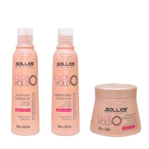 O Kit Color Hold Tratamento – 300 mL cada reúne shampoo, condicionador e máscara em uma solução profissional para cabelos coloridos. Os produtos atuam em sinergia para limpar suavemente, reparar a fibra capilar e proteger a cor, mantendo a intensidade da tonalidade e proporcionando fios mais fortes, macios e vibrantes.