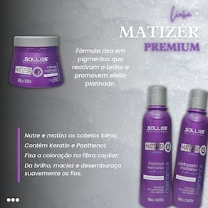 A Máscara Matizer Premium Maintence. Nutre e Matiza os Cabelos Loiros! Foi desenvolvidos para eliminar manchas amareladas de cabelos danificados e ressecados por processos químicos, deixando-os naturalmente enriquecidos pelos Nutrientes da Queratina e Pantenol. Adiciona brilho, maciez e desembaraçam suavemente os fios, contém proteínas que ajudam a fixar a coloração na fibra capilar.