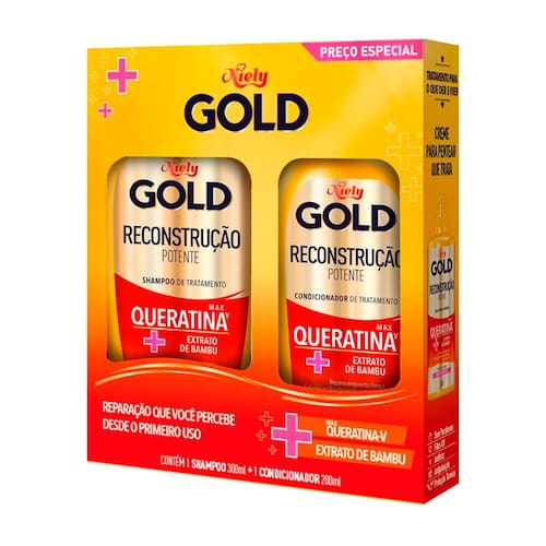 Kit Shampoo Niely Gold Reconstrução Potente Max Queratina-V 275ml + Condicionador 175ml da marca Niely, ideal para quem busca qualidade e desempenho na linha de Cabelos de Todos os Tipos, pertencente ao departamento de Cabelo. Produto desenvolvido para oferecer praticidade, segurança e eficiência no dia a dia. Com alto padrão de fabricação, é uma ótima escolha para consumidores exigentes que valorizam durabilidade e performance. Aproveite esta oportunidade e garanta já o seu.