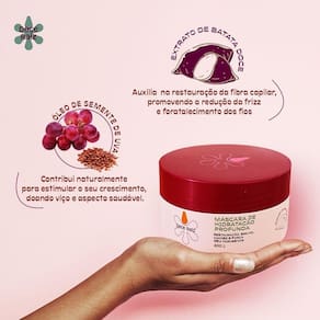 O Kit Doce Raiz foi desenvolvido para um ritual completo de hidratação capilar. O Shampoo Doce Raiz limpa suavemente enquanto prepara os fios para receber o tratamento, promovendo brilho e força desde a primeira lavagem. A Máscara de Hidratação Profunda complementa o cuidado com uma ação intensiva de restauração e maciez, devolvendo a vitalidade e reduzindo o frizz. Ambos os produtos são enriquecidos com extrato de batata doce, que auxilia na regeneração da fibra capilar e no fortalecimento dos fios, e óleo de semente de uva, que nutre profundamente e estimula o crescimento saudável. A combinação dos dois oferece um resultado visível, cabelos mais fortes, sedosos e com aparência saudável. Sem parabenos, o Kit Doce Raiz proporciona uma experiência de beleza natural, unindo leveza, brilho e força em cada aplicação.