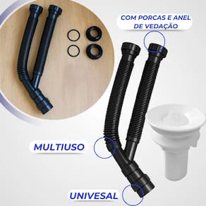 O sifão sanfonado, com comprimento de 80cm, oferece flexibilidade para ajustes de comprimento e ângulo, facilitando a instalação em espaços com diferentes configurações e reduzindo a necessidade de cortes ou adaptações complexas. Fabricado em plástico de alta qualidade, o produto apresenta excelente resistência à corrosão, desgaste e umidade, garantindo durabilidade e facilidade na manutenção.