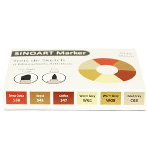 Marcador Artístico Sinoart Tons de Sketch com 06 unidades