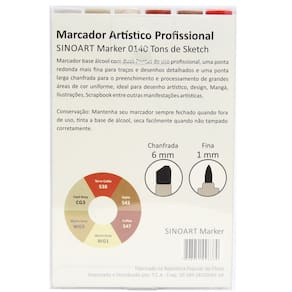 Com uma ponta chanfrada de 6mm e uma ponta redonda de 1mm, o Marcador Artístico Sinoart Tons de Sketch é versátil e se adapta a diferentes estilos de desenho, como artístico, design, mangá, ilustrações, scrapbook, entre outros.