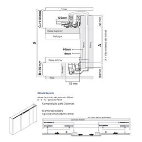 Kit Sistema Para Porta de Correr Dominus (0 A 20 Kg), 3 Portas - Rometal.