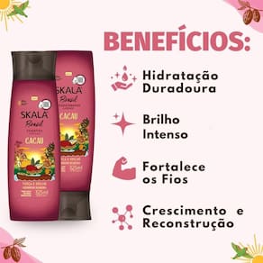 SHAMPOO: Aplique nos cabelos úmidos e massageie suavemente até obter uma espuma cremosa. Enxágue bem e repita a operação caso julgue necessário. Para melhores resultados, utilize a linha completa Skala Brasil Cacau.