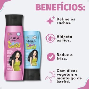 Este kit é especialmente formulado para quem deseja realçar a beleza natural dos seus cachos, proporcionando uma hidratação profunda e duradoura. Se você busca um tratamento capilar que defina seus cachos, reduza o frizz e proporcione um brilho radiante, o Kit Skala Expert #MaisCachos é a escolha certa. Ideal para uso diário, ele transforma seus cabelos, deixando-os mais saudáveis, bonitos e cheios de vida.