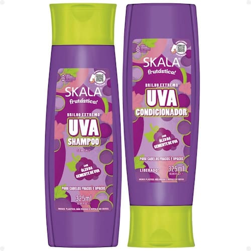 A linha Frutástica da Skala chegou para revolucionar sua rotina de cuidados, experimente o poder revitalizante do Kit Skala Shampoo e Condicionador de Uva! Especialmente formulados para todos os tipos de cabelo, esses produtos proporcionam uma limpeza profunda e uma hidratação intensa, deixando seus fios macios, brilhantes e com um aroma irresistível de Uva