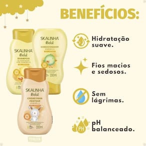 Descubra o Kit Skalinha Bebê, a solução ideal para o cuidado delicado dos cabelos do seu bebê. Desenvolvido pela SKALA, este kit completo oferece uma rotina de higiene capilar suave e eficaz, com a tranquilidade que a camomila proporciona. Perfeito para pais que buscam produtos de qualidade para a pele e cabelos sensíveis dos pequenos, garantindo limpeza, hidratação e facilidade ao pentear.