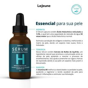 Kit skincare 3 sérum profissional - vitamina c antimarcas + ácido hialurônico antiidade + sérum olhos atenuador olheiras Kit lajeune rotina em 3 passos é o combo de 3 séruns perfeito para deixar sua pele radiante Kit composto por: 1 sérum vitamina c 30ml + 1 sérum ácido hialurônico 30ml + 1 sérum olhos 15ml 1 sérum facial vitamina c: repara clareia e revitaliza2 sérum facial ácido hialurônico: hidrata, suaviza e tonifica3 sérum olhos para a área dos olhos: reduz rugas, atenua olheiras, melhora a elasticidade ademais de ser a textura ideal pre-maquiagem Sérum vitamina c:O envelhecimento e a exposição solar são fatores que afetam a nossa pele que precisa de vitaminas. O sérum de vitamina c lajeune contém nutrientes essenciais para estimular a produção de colágeno, revitalizar e rejuvenescer. Prevenção e redução das rugas e linhas de expressão. Elimina pequenas manchas. Aumenta a elasticidade e o tônus da pele. Um tratamento facial para uso diário, recomendado para todos os tipos de pele, sem deixar seu rosto oleoso Sérum ácido hialurônico:O sérum lajeune contém ácido hialurônico reticulado, o qual tem uma capacidade de retenção de água 50 vezes maior que o ácido hialurônico normal. Estimula a produção de colágeno e elastina, melhorando a matriz da pele, criando um aspecto mais suave, forte e hidratado. Além disso, contém ingredientes naturais que ajudam a reverter o processo de envelhecimento, dando à sua pele um aspecto mais jovem e descansado. Com efeito lifting instantâneo traz uma expressão mais jovem e hidratação profunda e duradoura. Fácil de usar: colocar de 5 a 10 gotas do sérum de vitamina c na palma da mão, aplicar no rosto e pescoço com os dedos, sobre a pele limpa e seca, fazendo movimentos circulares, evitando o contorno dos olhos. Logo após, aplicar o sérum de ácido hialurônico da mesma forma descrita acima.Estes produtos podem ser usados de dia e/ou à noite. Lembre sempre de usar protetor solar durante o dia Sérum controno de olhos:É um corretor anti-idade para a área dos olhos que auxilia na redução de olheiras e rugas. Sua fórmula trabalha para dar aos olhos descanso e sensação de luminosidade. Possui máxima concentração dos ativos para proporcionar a redução de rugas desde a primeira semana de uso, devido à potente ação de renovação celular. Lajeune sérum contorno dos olhos é concentrado em ativos com potente ação antioxidante. Sérum de textura extremamente sedosa. Auxilia ainda a neutralização dos radicais livres proporcionando clareamento, uniformidade e luminosidade à pele. Ele possui uma associação de ativos que ajudam a prevenir e reverter os sinais do envelhecimento; esse dermocosmético age na pele ao redor dos olhos e reduz as rugas mais profundas, deixa a região mais firme e luminosa, proporcionando um rejuvenescimento de dentro para fora. Os resultados já podem ser percebidos desde a primeira semana de uso, devido sua potente ação de renovação celular. Sua embalagem é de fácil aplicação e o produto é indicado para ser utilizado em pele madura para redução de rugas profundas e recuperação da firmeza da pele da área dos olhos. Facil de usar: Na parte da manhã e/ou à noite. Após limpar e tonificar a pele, aplicar partindo da área interior em direção à área exterior dos olhos. Massageie com o dedo, de dentro para fora, para espalhar o produto por toda a região. Uso diário. Todos nossos produtos são formulados com a melhor combinação de ingredientes naturais, selecionamos com cuidado ingredientes que beneficiem a saúde da sua pele e que ajudem a manter a integridade do produto. Fórmulas todas sem parabenos, sem álcoois irritantes, sem silicones, sem corantes nem fragrâncias. Não testados em animaisVeganos Dermatologicamente testados. Feitos no brasil