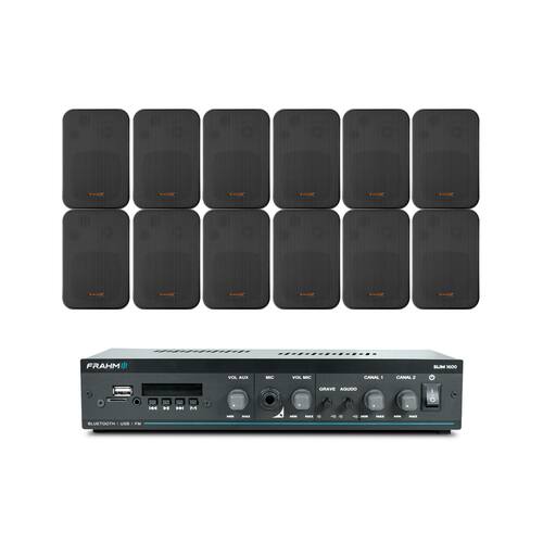• Item 1: Amplificador Frahm Slim 1600 G5 Multi-channel; • Marca: Frahm; • Modelo: Slim 1600; • Potência RMS: 2x30W; • Entrada: 2 canais independentes; • Canal 1: APP, Bluetooth, USB, SD Card e Rádio FM, Controle remoto com troca de pastas / Auxiliar - iPhone, iPod, CD, DVD, TV; • Canal 2: Microfone; • Saída: Line Out; • Equalizador: 2 vias (graves e agudos); • Alimentação: Bivolt Automático (com fonte chaveada 90 - 240V); • Dimensões (A x L x P cm): 5,8 x 27,6 x 12,3cm; • Peso: 1,100Kg;