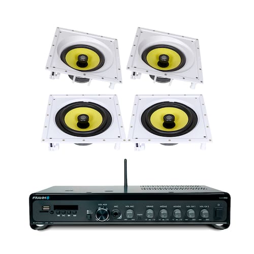 Modernize o áudio da sua casa com este sistema de som de alta qualidade. O kit inclui um amplificador potente e quatro alto-falantes de embutir, ideais para criar um efeito de cinema ou sonorizar grandes ambientes com total elegância.
