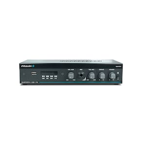 • Item 1: Amplificador Frahm Slim 800 G5 Bluetooth USB FM • Marca: Frahm • Modelo: Slim 1000 APP G2 • Potência: 40w RMS • Canais: 1 Conexões: • Canal 1: APP, Bluetooth, USB, SD Card e FM, controle remoto com troca de pastas / Auxiliar - iPhone, iPod, CD, DVD, TV, PC • Canal 2: Microfone • Equalizador: 2 vias (graves e agudos) • Impedância: 6 Ohms • Alimentação: Bivolt automático (com fonte chaveada 90-240V) • Dimensões do produto (A x L x C): 6,6 x 24,2 x 12,8 cm • Peso: 1,0 Kg