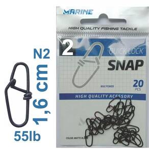 1 x Snap De Pesca Quick Lock N2 Marine Sports 25kg 55lb 20pçs