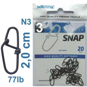 1 x Snap De Pesca Quick Lock N3 Marine Sports 35kg 77lb 20pçs
